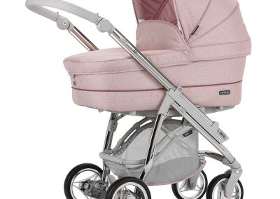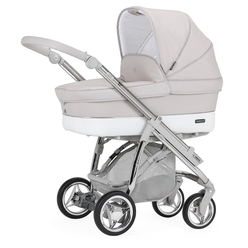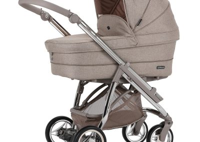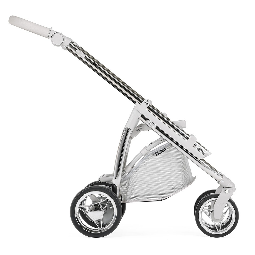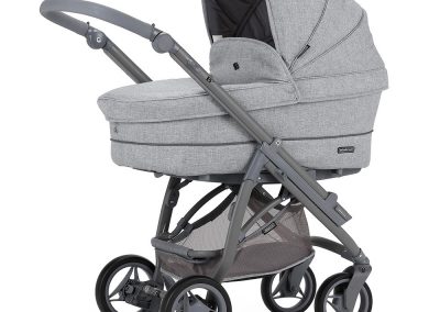 Está ainda munido de uma pega regulável em altura e extraível revestida em ecopele, que permite reduzir a profundidade do chassis, facilitar a sua arrumação ou simplesmente para poder mudar a cor da pega do seu carrinho.