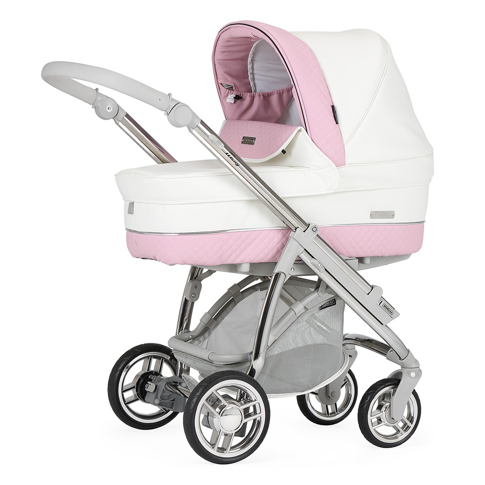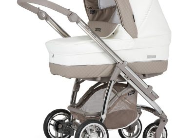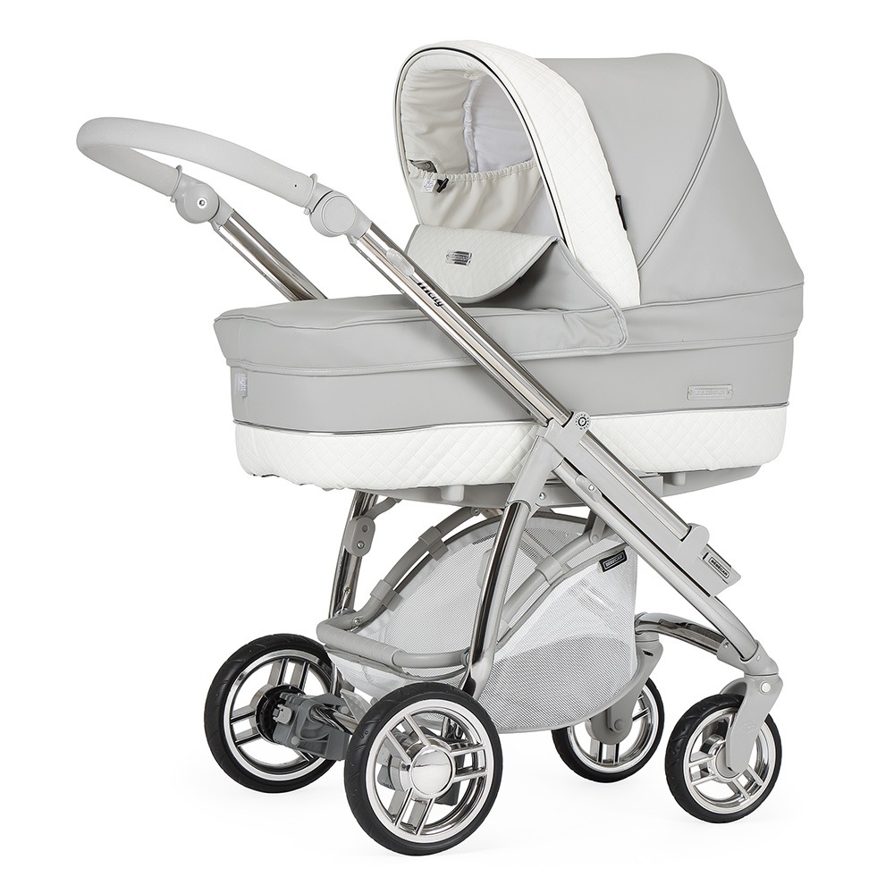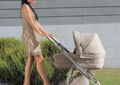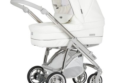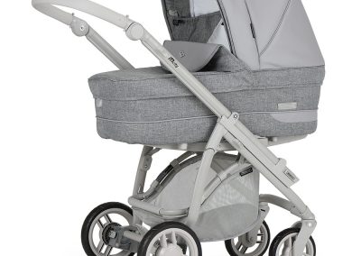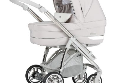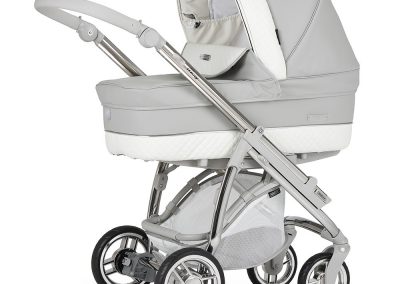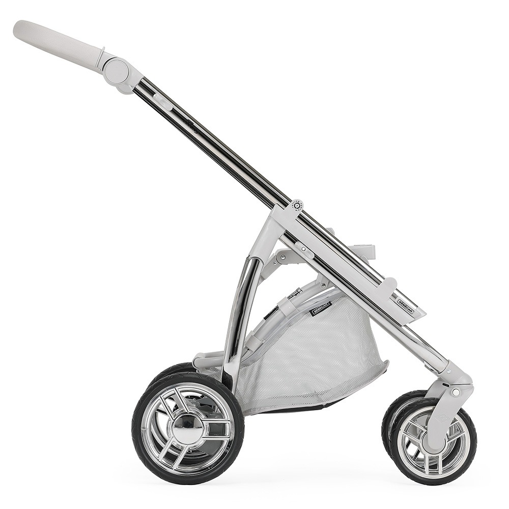 Está ainda munido de uma pega regulável em altura e extraível revestida em ecopele, que permite reduzir a profundidade do chassis, facilitar a sua arrumação ou simplesmente para poder mudar a cor da pega do seu carrinho.