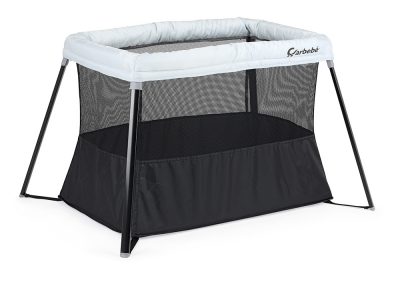 Berço de viagem Carbebé é ideal para levar nas suas viagens, leve e compacto, possui base acolchoada, laterais em rede para melhor ventilação e inclui um saco de transporte.